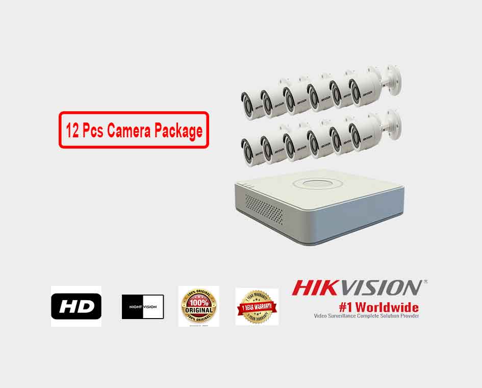 Hikvision (12 Pcs CC Camera Package ) with all required CCTV Camera Accessories.